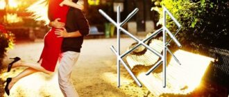 Руны: Тейваз — мужчина Наутиз + Вуньо — мягкое принуждение Райдо — движение к Беркана — женщина Оговор: Силой данных рун мужчина ….. мягко принуждается к необходимости прийти к ….