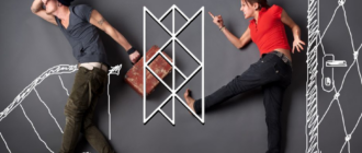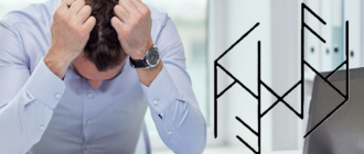 Руны: Манназ — сам объект Уруз зеркальный — вызывает неоправданное выпячивание своего Я, проявление необоснованных понтов) Наутиз — принуждает человека находится в иллюзии, что все в порядке, у него все замечательно Хагалаз зеркальный —