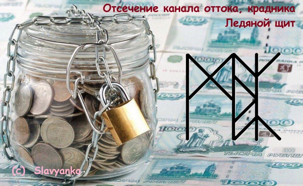 Действие рунного става направлено на отсечения от денежного канала оттоков и крадников.