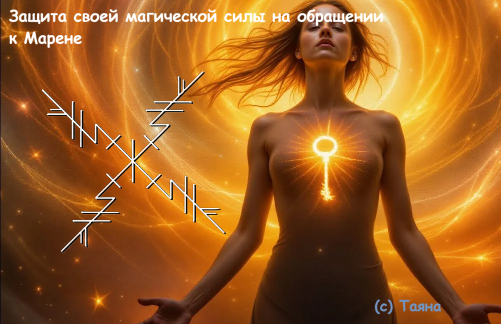 Силой данных знаков и силой моей Покровительницы Марены моя магическая сила, ее источники и ее выражение в моей магической работе и моей жизни, защищены от негативных воздействий и крадников любой природы и происхождения, находятся в целости и сохранности. ТБ, ДБТ.