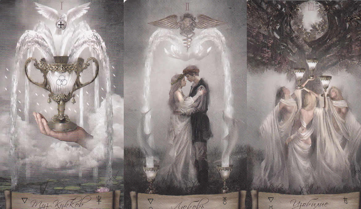 Каждый счастлив, если вокруг всего более чем достаточно. Тройка Кубков демонстрирует возвышение дружбы. Люди — общественные существа, нам нравится быть рядом друг с другом, делиться и хорошим, и плохим. Тройка Кубков демонстрирует эту нашу способность собираться в группы.