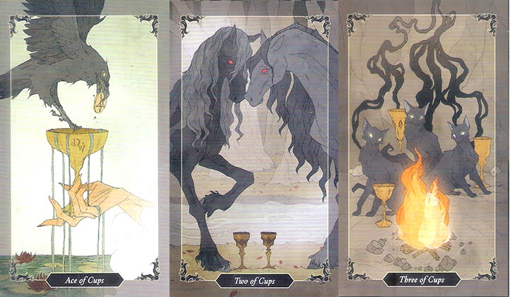 Двойка кубков — встреча с человеком, вещью или энергией, которые отражают состояние вашей души. Это радость от того, что вы видите себя в ком-то другом. Это трезвая оценка влечения к вещам, которые мы любим. Лошади символизируют интимность, нежность и уважение в дикой природе Темного леса.