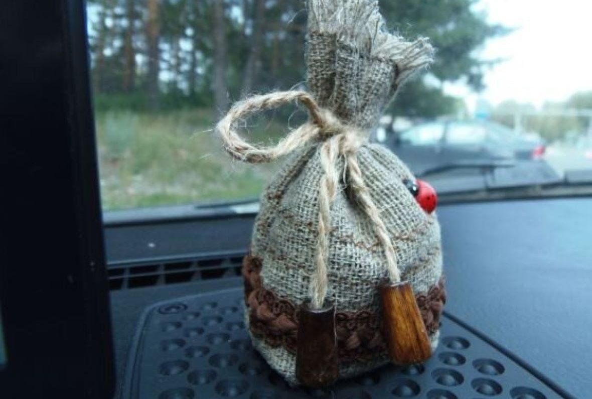 Мешочек положить в автомобиль.